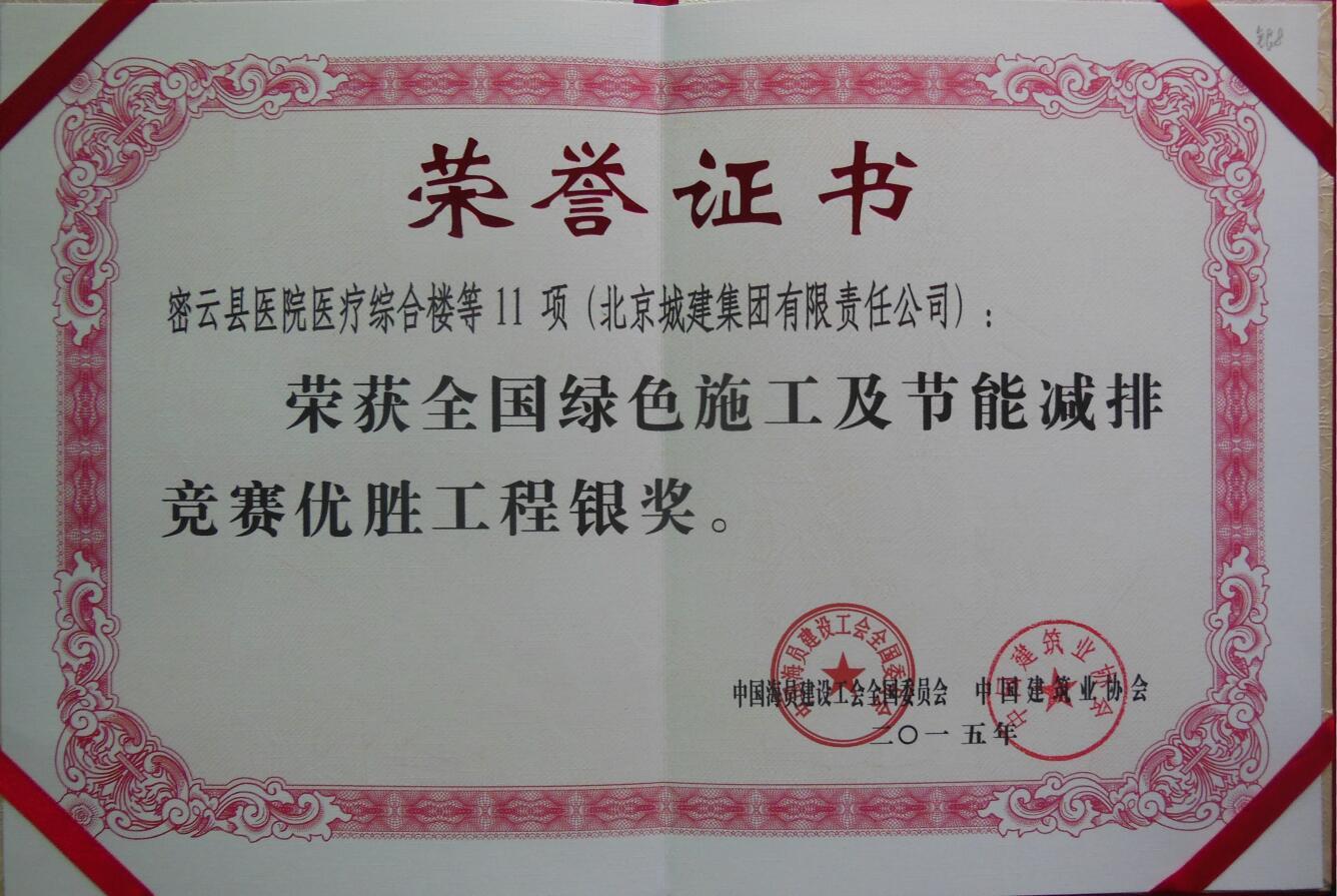 公司喜获全国绿色施工及节能减排竞赛优胜工程银奖